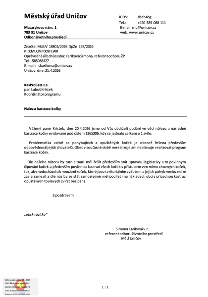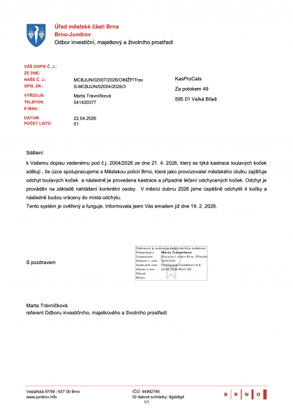 Dejte vědět obecním úřadům, že vás problematika toulavých koček a její prevence zajímá. Prostřednictvím vašeho podpisu tvoříte poptávku, o které se úředníci domnívají, že neexistuje a proto nepovažují toto téma za důležité. Podepište, prosím, naši výzvu směřovanou lokálním úřeníkům a komunálním politikům: