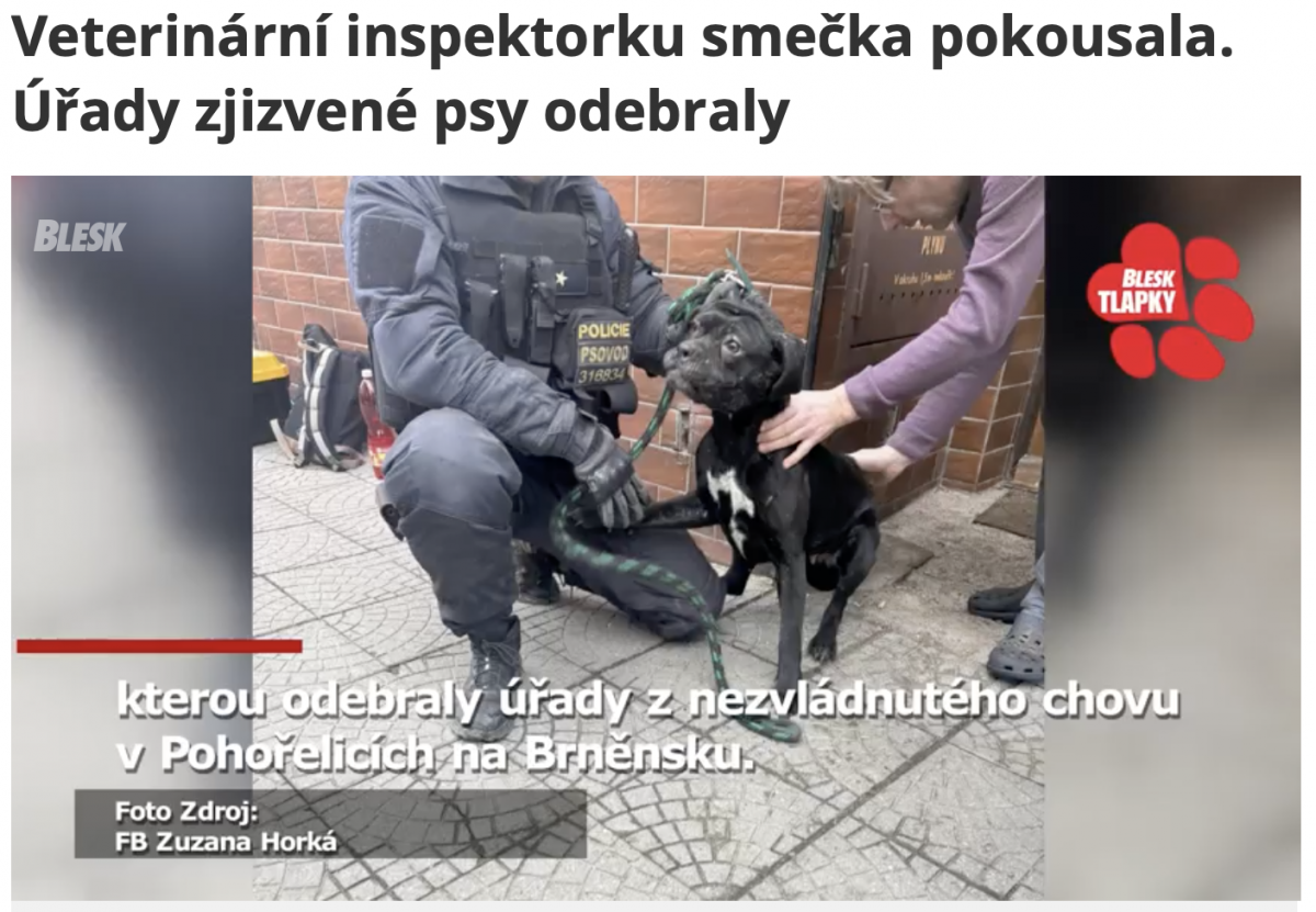 Loni zaútočila v Pohořelicích na Brněnsku smečka cane corso na veterinární inspektorku. Nyní úřady konečně nezvládnuté psy majiteli odebraly. Nejde ale o žádné zabijáky, jsou to zvířata samý šrám, podvyživená a psychicky zlomená.